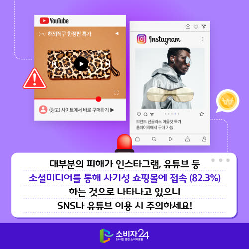 해외직구에 대한 관심이 높아지면서, SNS 광고를 통한 사기성 쇼핑몰 피해가 매년 증가하고 있습니다. 특히 인스타그램, 유튜브 등 소셜미디어 플랫폼에서 브랜드 제품을 지나치게 저렴하게 판매하거나, 한정 수량·특가 할인 문구로 소비자들의 구매를 유도하는 사례가 많습니다. 그러나 실제 제품은 브랜드가 아닌 저품질의 모조품이거나, 아예 배송조차 되지 않는 피해 사례도 많습니다.