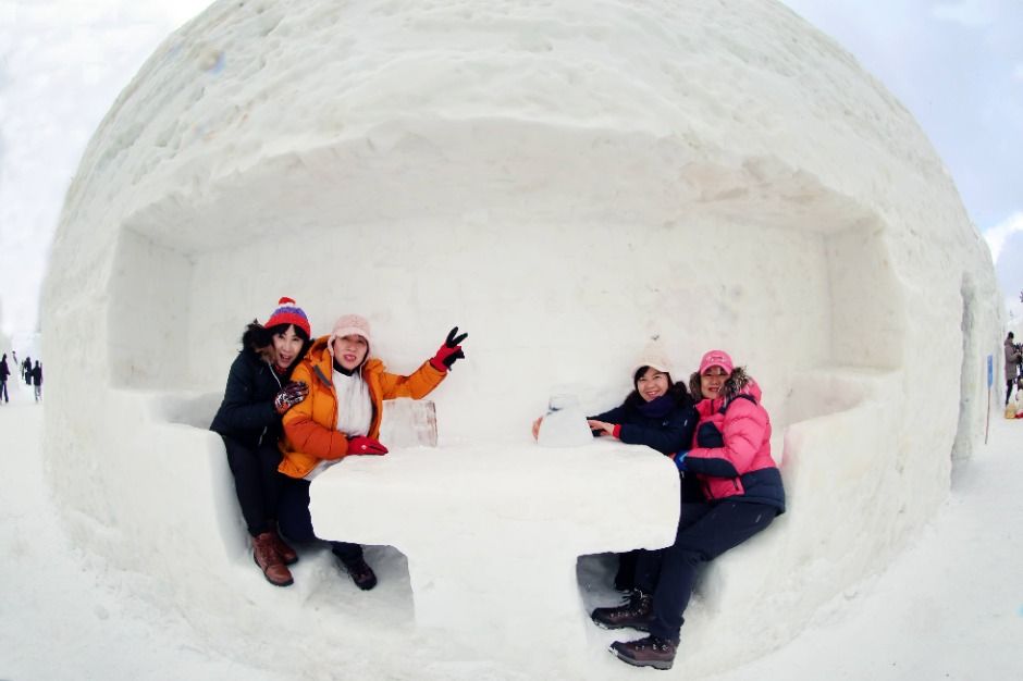 - [전시] 대형 눈조각 & 눈터널: 대관령의 매서운 추위가 빚어낸 거대한 예술품! 눈동이의 성장 과정을 담은 테마 눈조각들이 축제장 곳곳에 배치되어 최고의 포토존을 제공합니다.